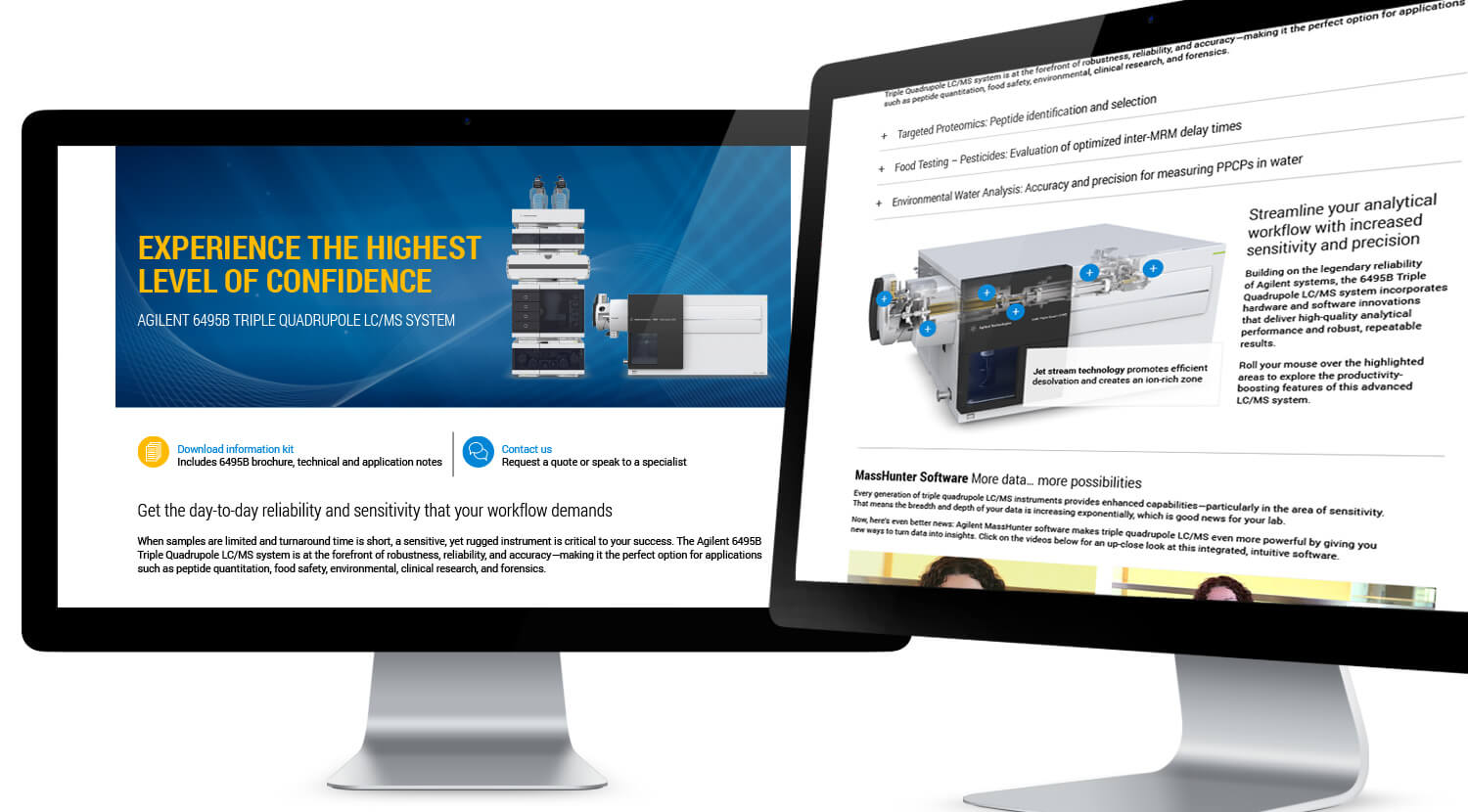 Promotional landing pages for scientific instruments can quickly get bogged down with technical information. Our challenge is to organize it and present it in a way that delivers the marketing message while providing access to technical details.