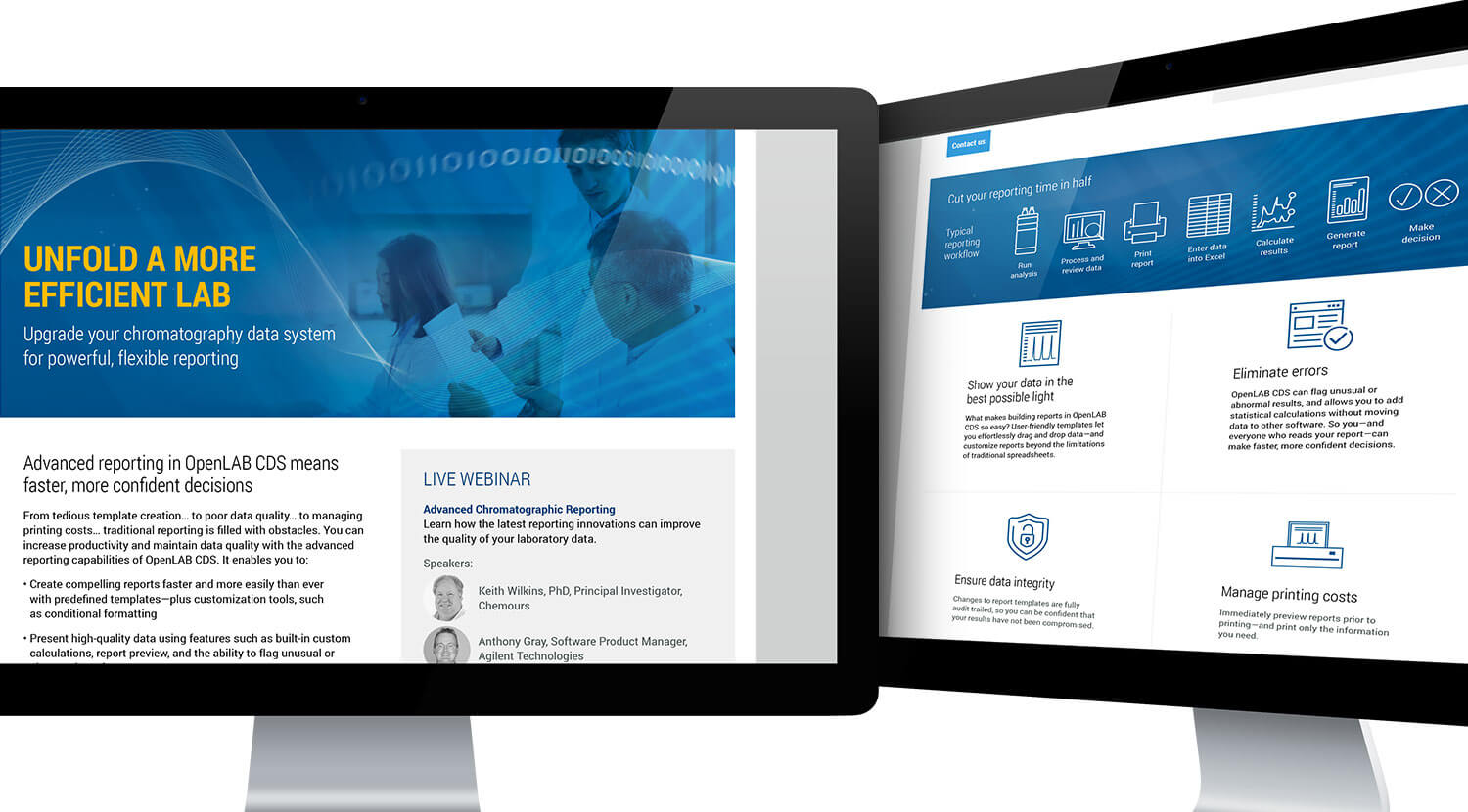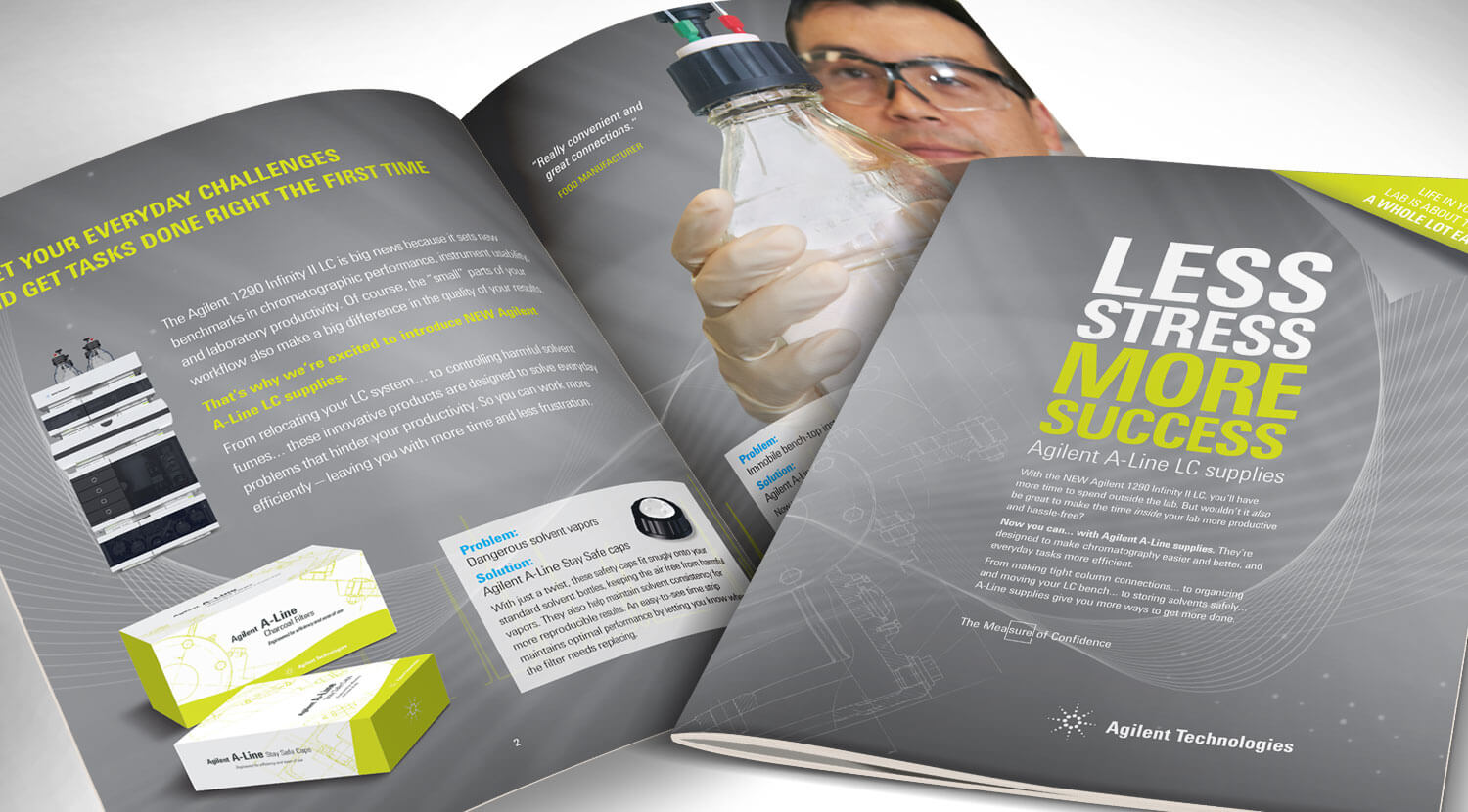 A full-color magazine insert was a great way to showcase Agilent’s new product line complete with new product packaging. The multi-page insert was later converted into a brochure.