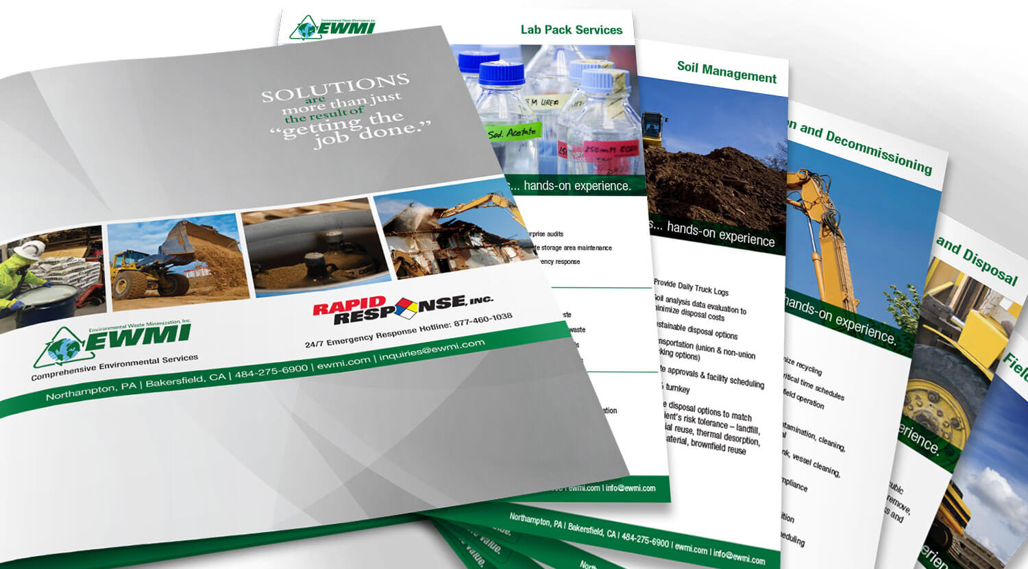 This pocket folder for EWMI is used to hold sales sheets for their marketing team, proposals for their sales department, or on-the-job documents for the field crews. It looks equally good on a desk or at a job site.