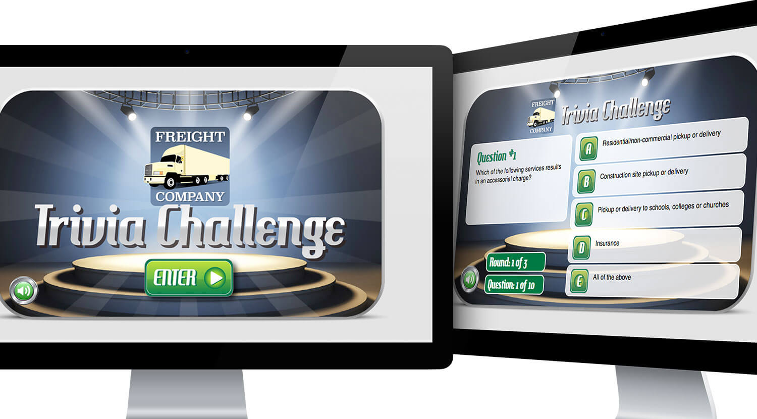In shipping logistics, time, space, and procedures are everything and errors cost money. This undisclosed freight company needed a tool to help educate customers on common shipping errors in a fun, friendly way. This online game uses visuals, sounds and trivia to create awareness about potential problems that customers can avoid to improve their shipments.
