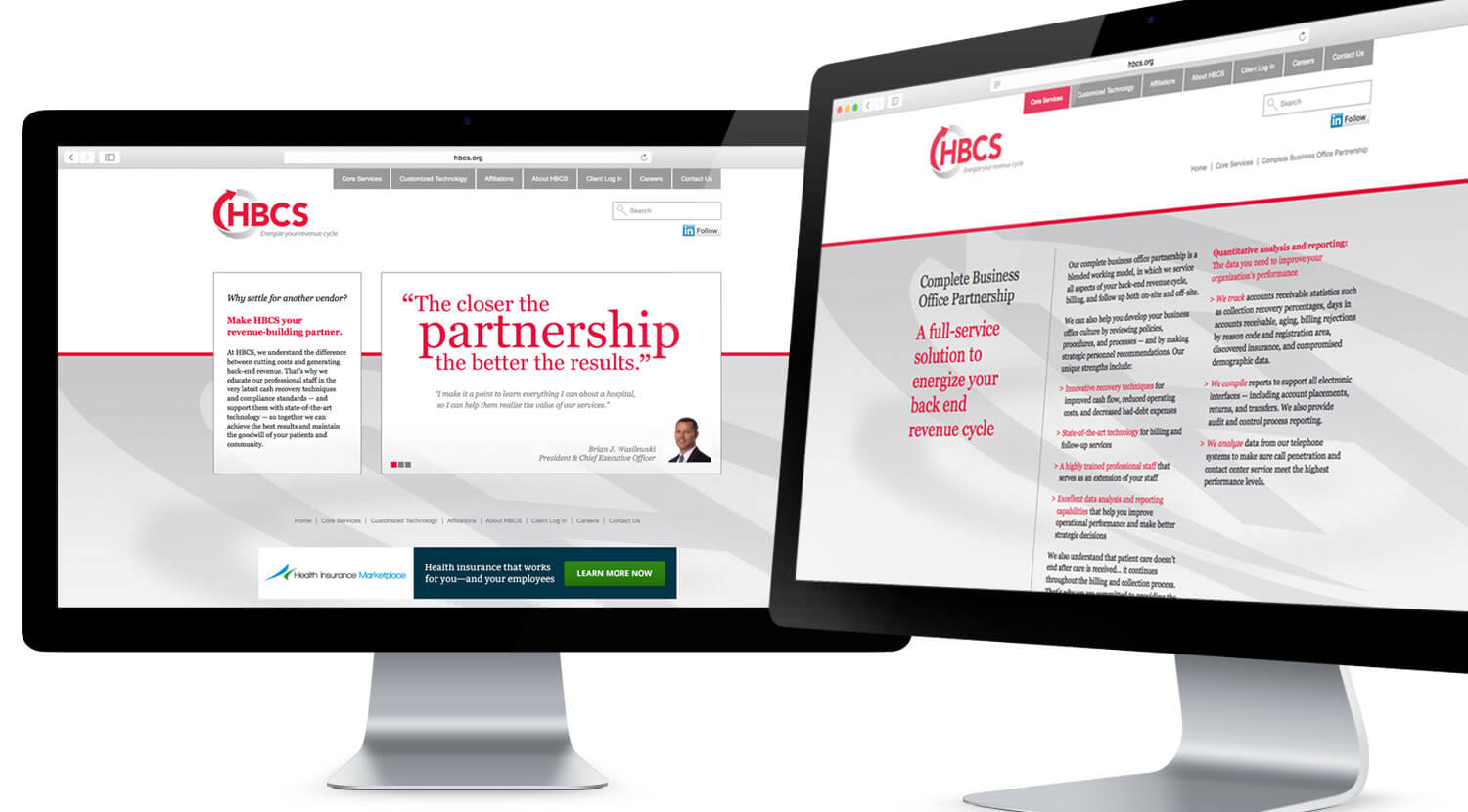 Although HBCS works with payments, they are not a bank. They coordinate with medical insurances, but they are not an insurance company. Their clients are hospitals, but they themselves are not in the medical industry. So we used an all-typography style on their website to avoid potentially misleading viewers with industry photography. The result is a crisp, clean and credible site.